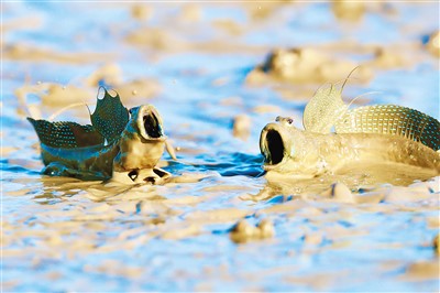 滩涂上的弹涂鱼。 |