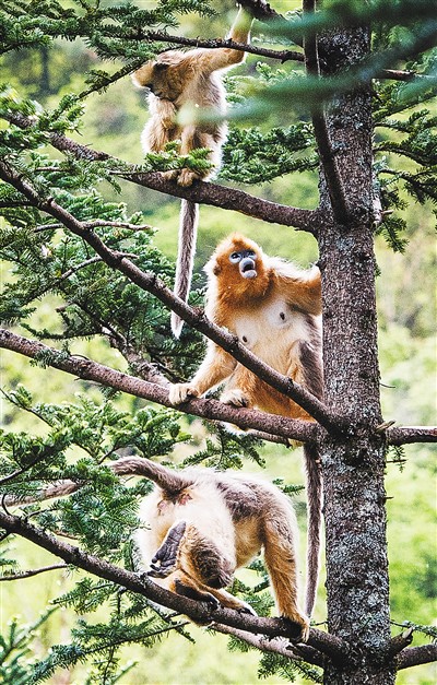 金丝猴在神农架国家公园大龙潭金丝猴野外研究基地活动。 |