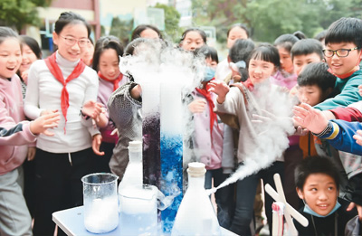 近日,河南省洛阳市涧西区英语学校举行校园科技节活动,学生们参与科技挑战赛、创意搭建、人工智能等科技项目的展示与比拼,体验科技魅力及其带来的快乐。