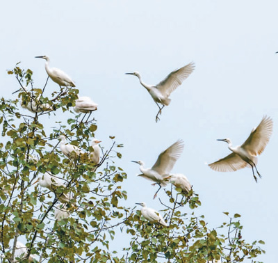 进入秋季,成群的鹭鸟飞至贵州省毕节市百里杜鹃管理区鹏程街道湿地公园,成为一道靓丽的风景。 |