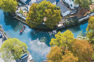 在浙江省长兴县龙山街道渚山村,保洁人员进行日常河道护理巡查。 |