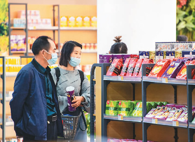 10月12日,参观者在选购进口商品。 伍志尊摄(新华社发)