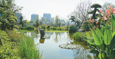 前面提到的江东水生态公园,就是依照自然湖泊湿地而建。“修复了草、鱼、虾、贝和食藻虫等完整的生态链系统,通过水生动物和植物形成共生关系,最终将水体污染物转化成生物蛋白。”黄荣敏说。