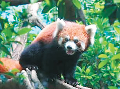 《名录》中列入的2种小熊猫有着不同的面部毛色特征。图为福州大熊猫研究与交流中心内的中华小熊猫。 |