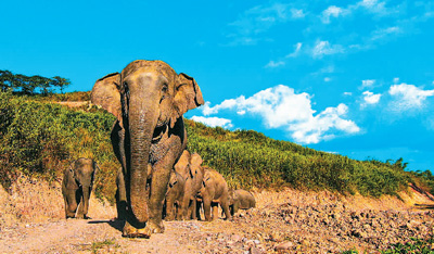 亚洲象是亚洲陆地上最大的动物。图为2021年1月在云南西双版纳拍摄到的亚洲象群。随着中国生态保护力度增强,种群数量明显增长。 |