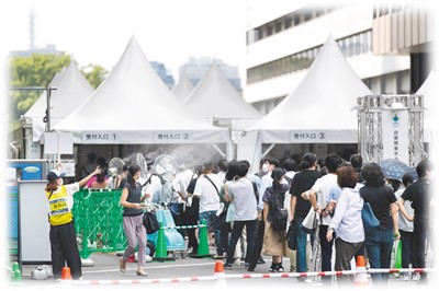 8月26日,日本东京一处新冠疫苗接种点,人们排起长队。 |