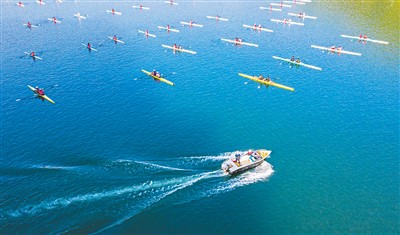 图为在石林镇举办的港湾水上运动比赛。