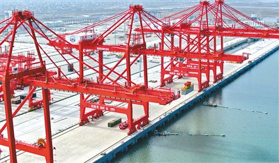 江苏省启东市通州湾位于“一带一路”倡议与长江经济带、长三角一体化发展等国家战略叠加交汇点,该湾新出海口吕四起步港区预计年底开港运营。图为十一月十六日拍摄的吕四起步港区“2+2”码头工程新貌。 |