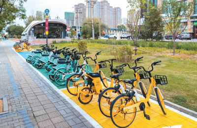 位于内蒙古呼和浩特市街头的共享单车。 |