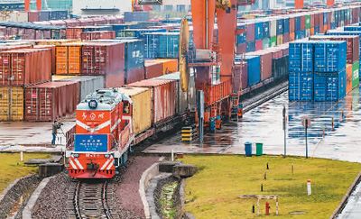 今年以来,中欧班列浙江金东平台联合铁路、海关等部门,精准服务,搭建外贸绿色通道。图为X9216/5次“杭叉号”中欧班列从浙江金华南站启程,经霍尔果斯出境,驶向哈萨克斯坦的梅杰乌。 |