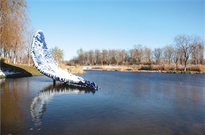 北京通州区城市绿心森林公园水系中的雕塑《舟》 |