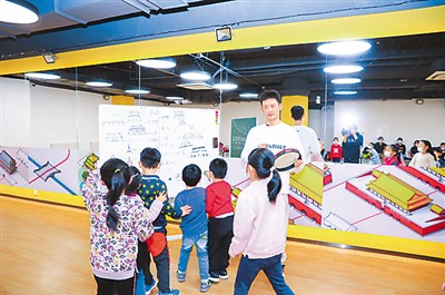 孩子们在老师指导下,用肢体演绎钟鼓楼。 |