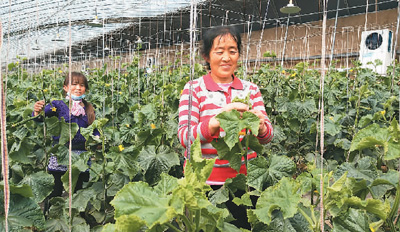 山东聊城经济技术开发区引导农业示范园区引进推广物联网、人工智能技术,实现蔬菜大棚自动化管理,提升经济效益,助力乡村振兴。图为聊城市蒋官屯街道四合村兴华东生态园区农业有限公司农户在大棚里管护蔬菜。