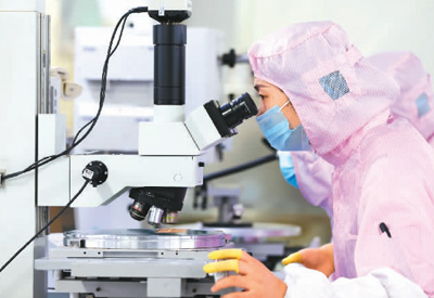 江苏省宿迁市积极实施专精特新“小巨人”企业培育计划,引导中小企业加大科研投入,提升企业创新能力。图为该市泗洪经济开发区一家制造芯片企业的工人正在车间忙碌。 |