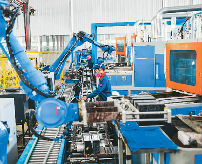 在浙江省湖州市长兴县和平镇,某公司工作人员正在自动化生产线上赶制低碳新能源汽车电池订单产品。 |