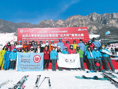 1月8日,由北京大学主办的滑雪体验活动在北京延庆的滑雪场举行。作为“两岸大学生冰雪嘉年华”系列活动之一,吸引了来自北京大学、清华大学、中央民族大学等8所高校的近50名在京台籍学生参加。图为参与活动的台生在滑雪场合影。