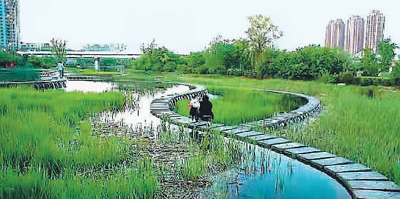 梅城独特的河湖连通生态水系,使得市区街路、住宅、公园、树木、河流、湿地、湖泊融为一体,形成东北的“江南水乡”。滨河两岸的景观带上、湿地公园里,江南风格的亭台水榭、白玉拱桥、园林小品布局巧妙。春夏之时,这里绿植葳蕤,鲜花美艳,如诗如画。