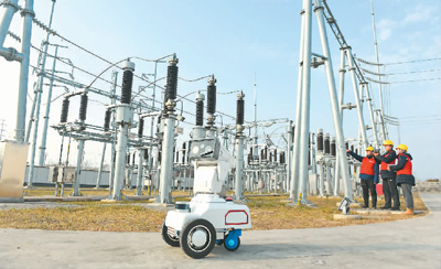 1月17日,一台5G智能巡检机器人和运维人员对安徽省滁州市“京沪高铁”定远站供电设备进行巡检。 |