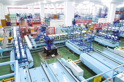 机器人在位于江苏省苏州市吴江区盛泽镇的一家智能车间内自动作业。 |