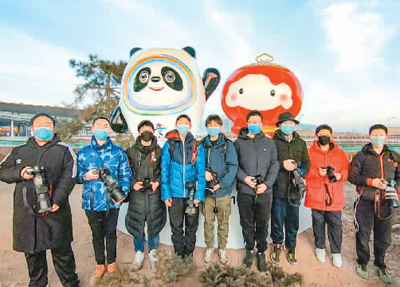 节目中拍摄冬奥风景的摄影爱好者与冬奥吉祥物合影。 海外网 李帛尧摄