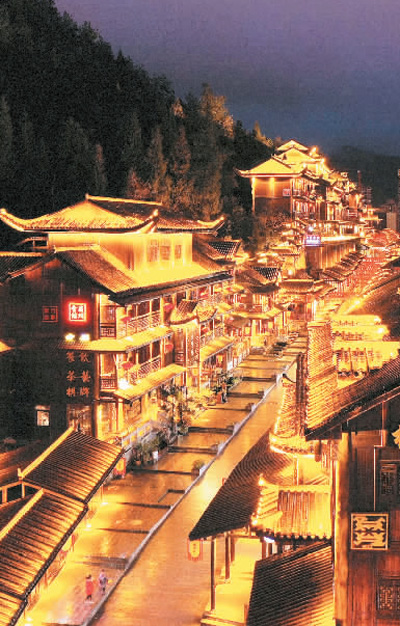 春节将至,重庆市酉阳土家族苗族自治县酉州古城景区灯火璀璨,年味十足。 |