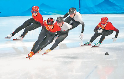 2月7日,在北京冬奥会赛场,中国体育代表团获得1金2银,继续创造佳绩。在短道速滑男子1000米比赛中,中国队运动员任子威、李文龙从激烈的竞争中脱颖而出,拿下1金1银。任子威以1分26秒768的成绩为中国队取得了在该项目的首枚冬奥会金牌。至此,中国体育代表团在本届冬奥会已收获2金2银。图为短道速滑男子1000米决赛现场。