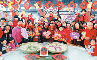 今年春节期间,江苏省苏州市八十多名台湾海峡两岸婚姻家庭成员相聚一堂,写春联、包饺子、吃百家宴……在祝福声中相互拜年,快快乐乐欢度虎年新春。 |