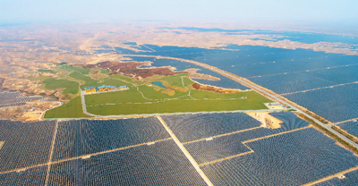 宁夏可再生能源丰富,吸引了不少企业在此布局数据中心。图为位于宁夏银川黄河东岸的一处光伏电站。 |