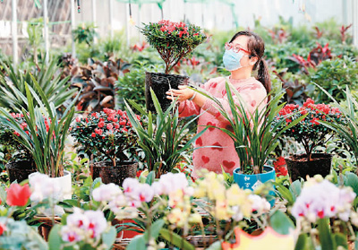 近年来,河北省新河县通过政策引导和帮扶资金扶持农业合作社,种植花卉、火龙果等特色农产品,促进农业增效和农民增收。图为游客在新河县西郑家庄村花卉种植基地选购鲜花。 |
