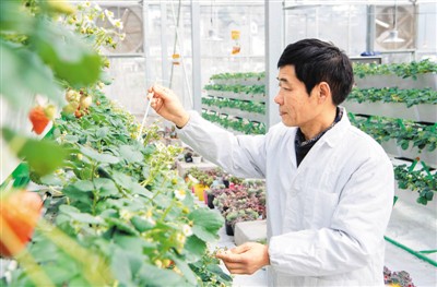 湖北省襄阳市保康县通过“专业合作社+基地+农户”模式,发展设施草莓、设施蔬菜等果蔬种植,有效提升了当地农业科技化、标准化、产业化水平。图为农业技术人员在保康县城关镇刘家坪村智能温室查看土壤温度。 |