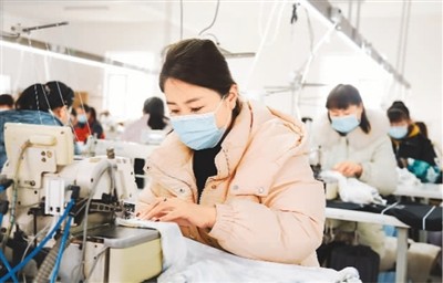 近年来,河北省邢台市南和区出台优惠政策,鼓励当地劳动密集型企业进驻农村设立“微工厂”,通过订单生产,实现群众在家门口就业增收。图为2月22日,南和区河郭镇郄庄村村民在一家“微工厂”加工服装。 |