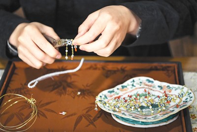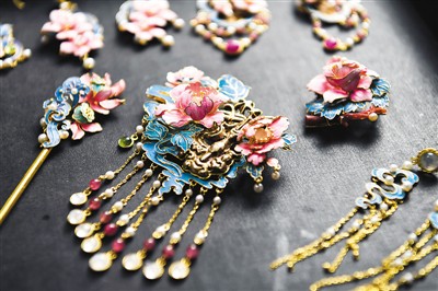 辜国强及其工作室制作的花丝镶嵌首饰。 |
