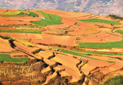 春“染”红土地 二月十八日,云南省昆明市东川区红土地镇花沟村,火红的田野春意盎然。 祝振强摄(人民视觉)