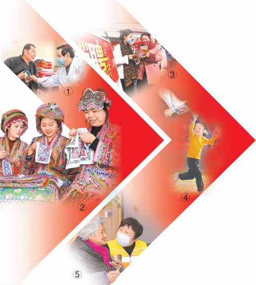 图⑤:2月24日,在福建省福州市鼓楼区安泰街道社区智慧养老服务照料中心,工作人员在询问老人用餐情况。