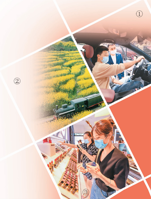 图③:2021年6月18日,在海南海口日月广场免税店内,种类多样的免税品吸引游客前来选购。