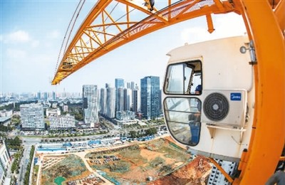 3月7日,在武汉市中建三局三公司某工地上,一名塔吊司机正在100多米的高空中操控塔吊。 |