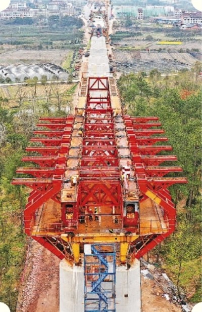 3月13日,浙江省杭温高铁台州市仙居特大桥施工现场,工人们正在加紧施工作业。 |