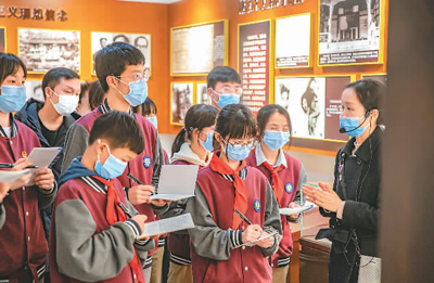 在重庆市南岸区红岩英烈王朴故居,讲解员为中学生讲解烈士事迹。 新华社记者 黄 伟摄