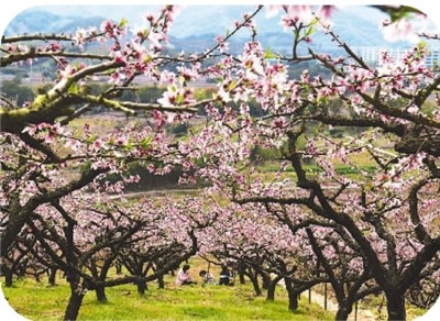 近日,浙江省宁波市奉化区萧王庙街道一处桃园内,桃花漫山盛开,一派生机勃勃的春日景象,吸引大批游客前来观光游玩。奉化是“中国水蜜桃之乡”,全年水蜜桃产值超5亿元,带动当地村民致富。每年3月,随着5万多亩桃花徐徐绽放,奉化美丽乡村游迎来旺季。 景士杰/文 胡学军/图