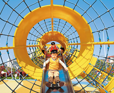 四月三日,小朋友在浙江省玉环市大麦屿体育“口袋公园”内玩耍。 |