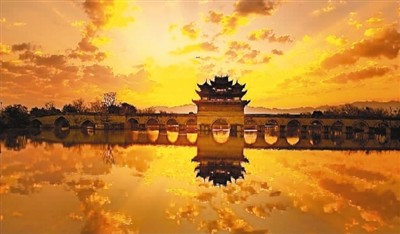 晨光下的云南省建水县双龙桥。 |
