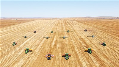 4月28日,农机手驾驶农机在内蒙古自治区扎兰屯市呼伦贝尔农垦大河湾农牧场有限公司田间进行春耕播种。 |