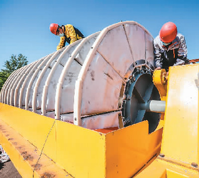 河北省遵化市矿山机械制造企业积极推动产品升级,在打开产品销路的同时,发挥了稳生产、保就业的作用。图为5月16日,工人在遵化市元利机械设备有限公司检查产品质量。 |