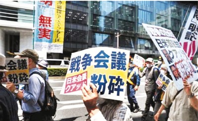 出于对日本偏离和平之路的担忧,自5月22日起,日本民众在东京举行多场集会和示威游行活动,抗议日美双方破坏地区和平稳定。抗议人群高举旗帜,高喊“反对战争”“反对四边机制”“防止修宪”等口号。