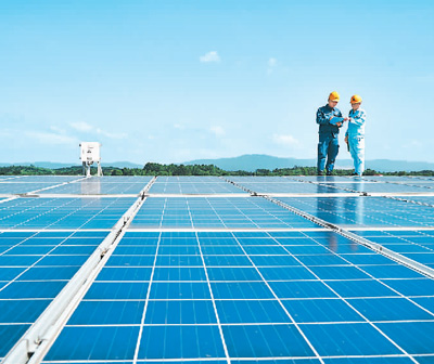 今年以来,广东省广州市光伏产业发展进入快车道。1—4月,广州市分布式光伏投产容量3.71万千瓦,其中10千伏高压分布式光伏投产容量1.13万千瓦,同比增长102.29%。图为日前南方电网广州从化供电局运维人员为广州从化明珠工业园的一处屋顶光伏项目提供技术指导。 |