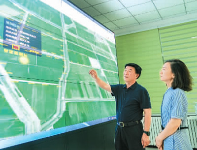 5月28日,邹平市明集镇农业技术人员在农业智慧平台查看“数字农田”监管和服务系统的分布使用情况。