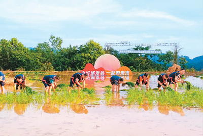 近日,湖南省张家界市空中田园举办首届插秧节,期间举行了趣味拔河、抓鸭子及民族歌舞等活动,吸引了众多游客参与。空中田园位于张家界核心景区,因位于悬崖上而得名。