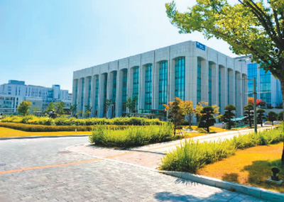 延世大学的中央图书馆气派、宏大,外观方正对称,整体简约,巨大的玻璃窗户在阳光下熠熠生辉,现代、前卫的风格在校园一众建筑里脱颖而出。进入图书馆正门,大厅敞亮,有一条长廊通向学术情报院。在学术情报院里,延世大学的学生可以查阅最新文献资料,也可以安静学习。长廊的两侧是“功勋墙”,记录了为延世大学做过贡献的每一位校友。走在长廊里观看前辈们的名字牌,让人感受到学校的历史沉淀。