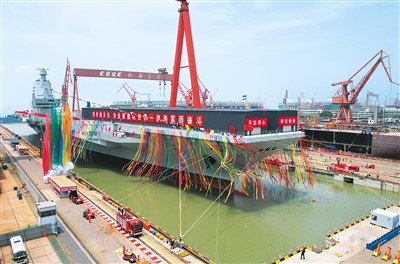 据新华社上海6月17日电 (记者黎云、梅常伟)中国第三艘航空母舰下水命名仪式17日上午在中国船舶集团有限公司江南造船厂举行。