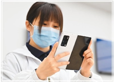 如果不慎摔坏屏幕,换屏对消费者是一笔不小的开销。折叠屏手机要想征服更多消费者,不仅要“好用”,还要“耐用”。如何让柔性屏做到“刚”“柔”并济?“我们把透明聚酰亚胺和超薄玻璃盖板复合,外加表面防指纹硬化涂层,使屏幕表现出优异的防刮擦能力。其次,通过使用高缓冲能力的胶材和泡棉材料以及图案化的支撑材料来提升柔性屏的耐摔能力。”邱海军说。